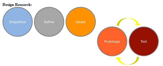 Design Research is a process of starting with an understanding of customer needs and then taking technical feasibility and business objectives into account to build new product concepts or business strategies. These new ideas are then brought to reality in prototype format and tested with customer feedback. Definitions of each stage of the Design Research process laid out in Figure 2 above is: